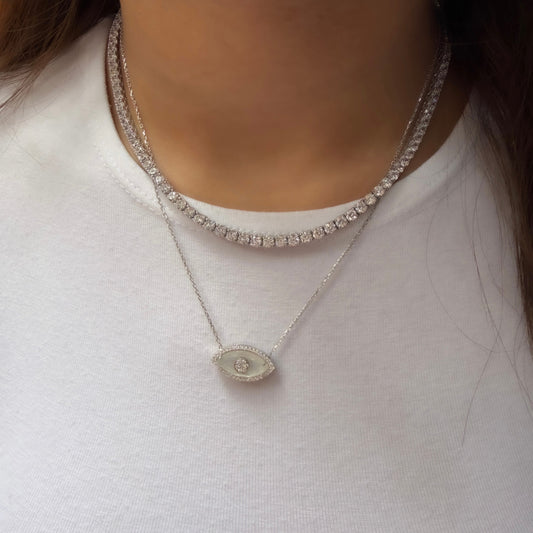White Glass Eye Necklace