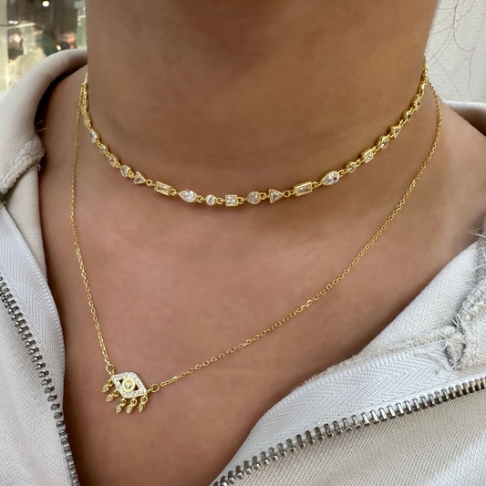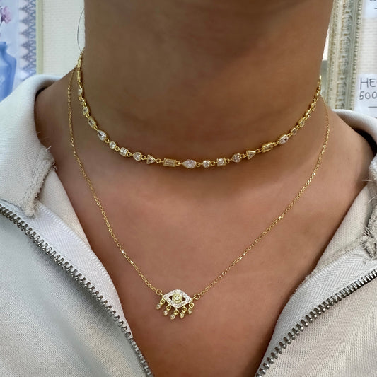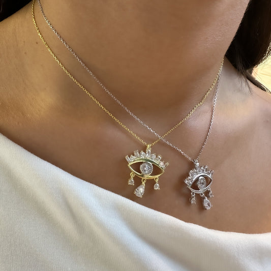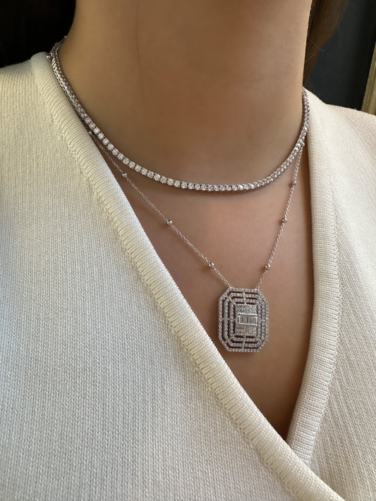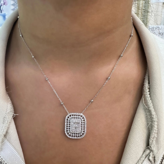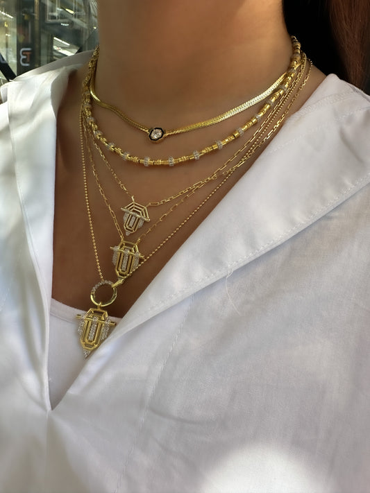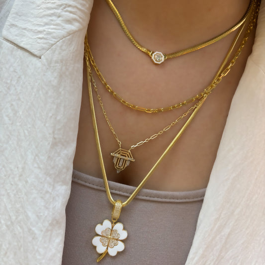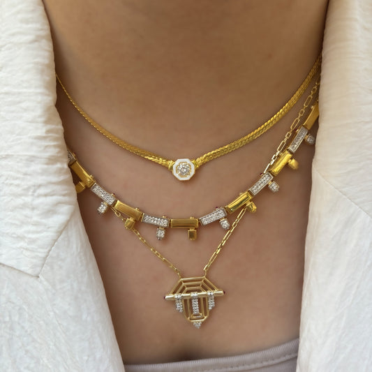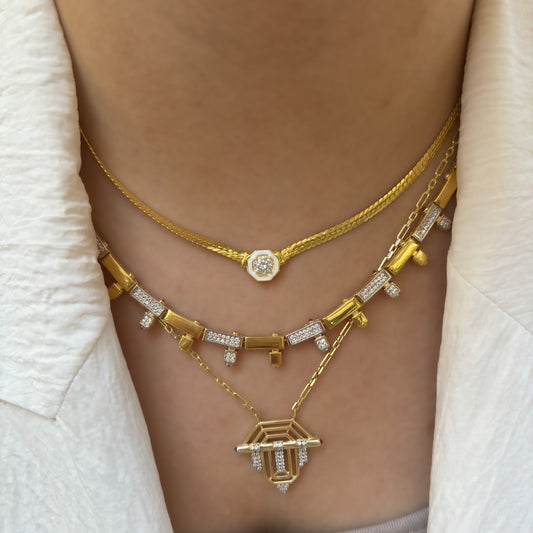 قلادة سيريناي مع مينا بيضاء وحجر في المنتصف