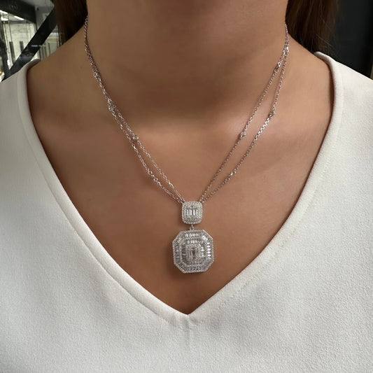عقد من اللؤلؤ بمشبك مثمن الشكل