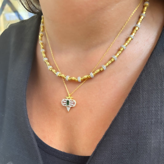 قلادة / سحر من الحجر الأخضر المطلي بالمينا الأبيض