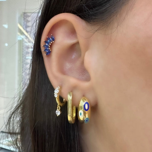 أقراط دائرية على شكل باغيت بثلاثة صفوف