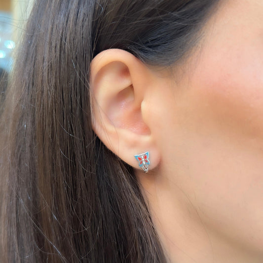 أقراط على شكل قلب مطلية بالمينا الزرقاء