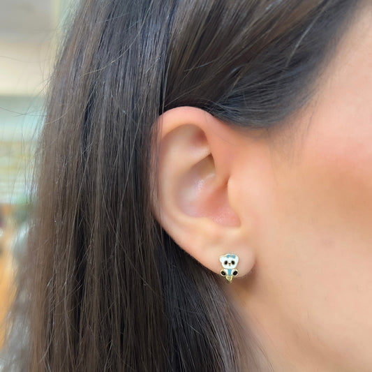 أقراط دائرية من المينا باللون الأزرق الفاتح