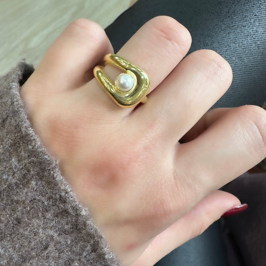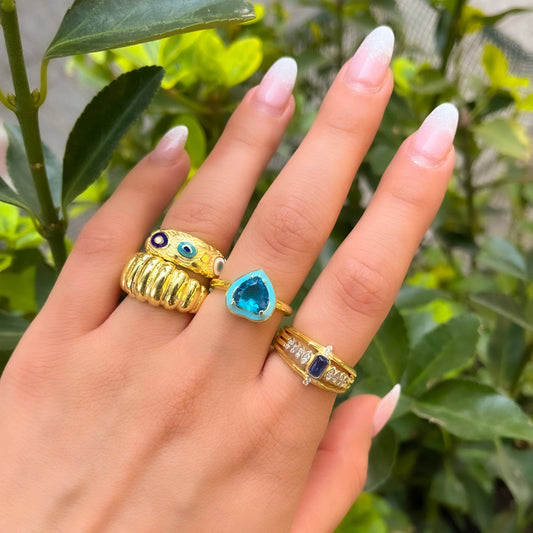 خاتم على شكل قطرة ماء حجرية صغيرة