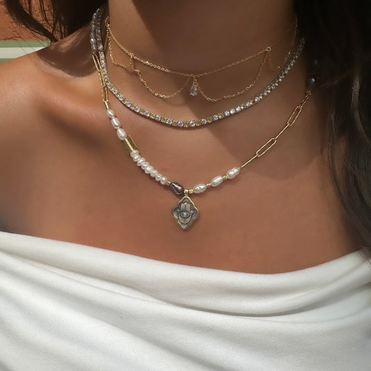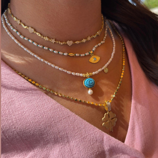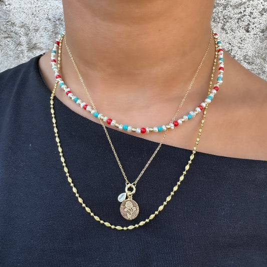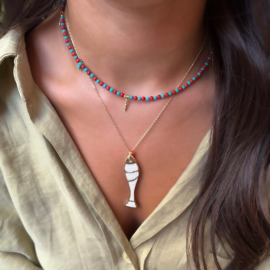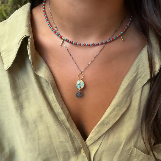 Turquoise and Coral with Gold Details Natural Stone Necklace