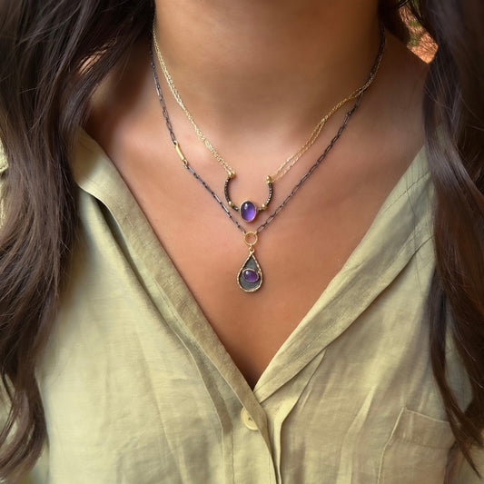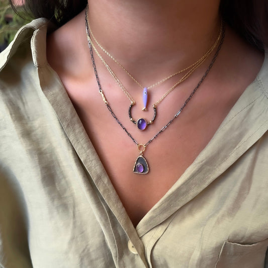 Amethyts Stone Triangle Model Natural Stone Necklace