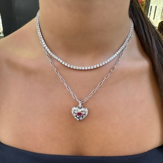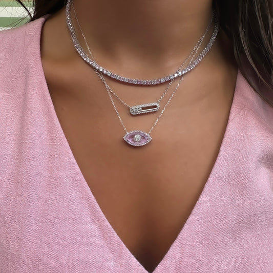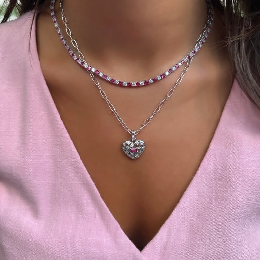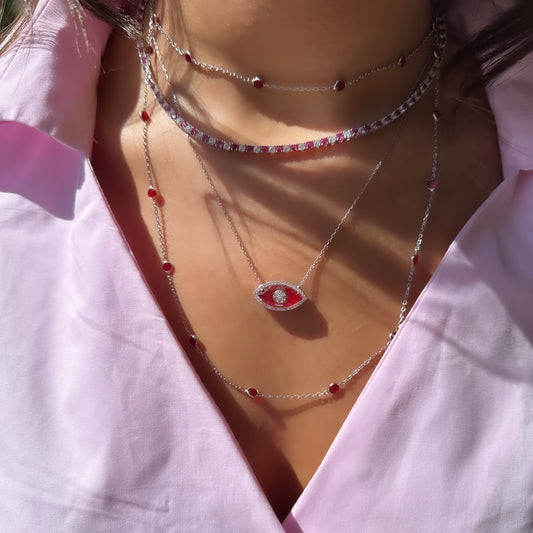 Two and a half mm Fuchsia Stone Tennis Necklace