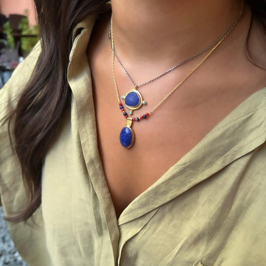 Natural Stone Necklace with Lapis and Turquoise Stones