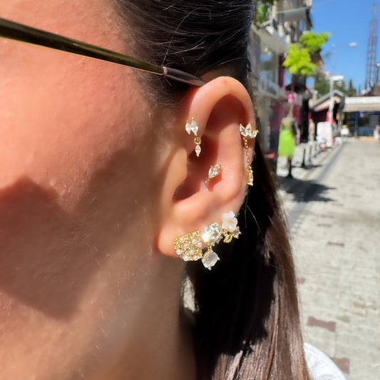 Çoklu Baget Taşlı Küpe