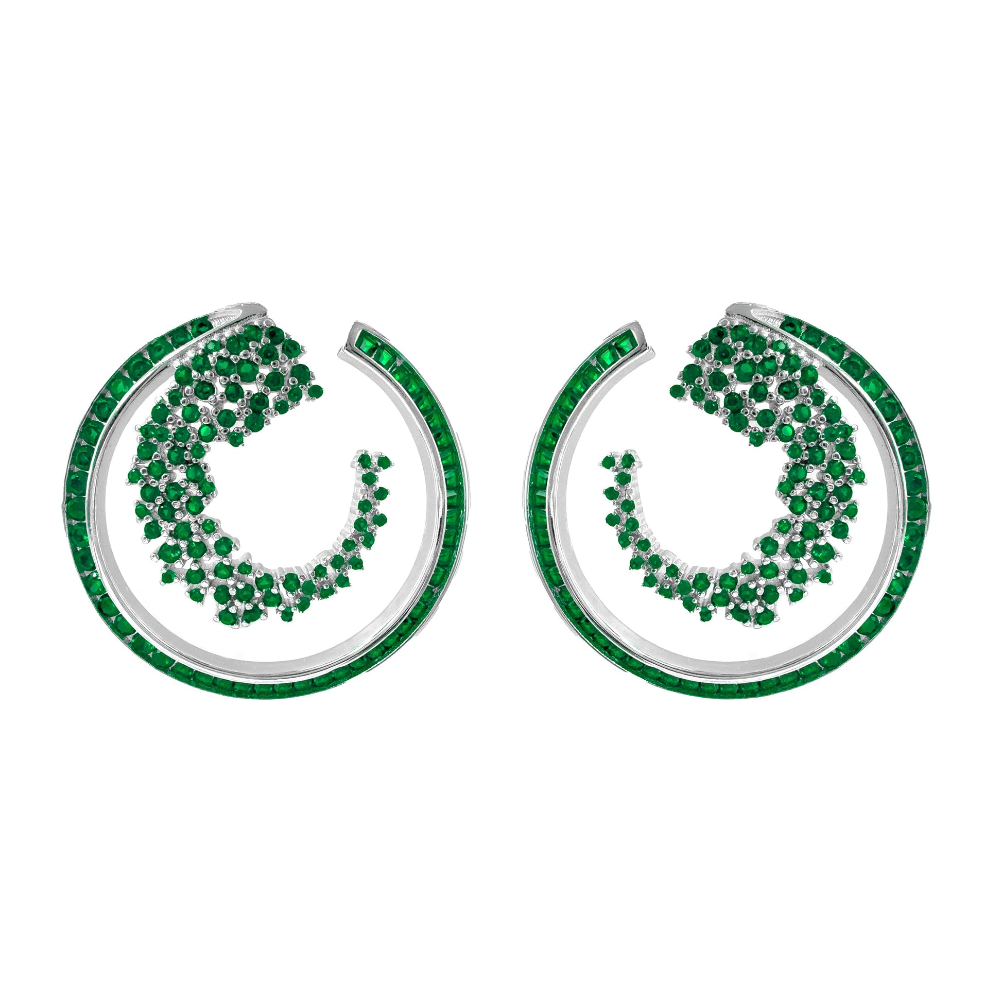 Yeşil Taşlı Tasarım Yuvarlak Küpe